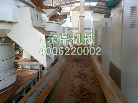 4,冷卻篩分系統。壓制好的顆粒經過皮帶輸送機進入冷卻篩分機,進行冷卻篩分。